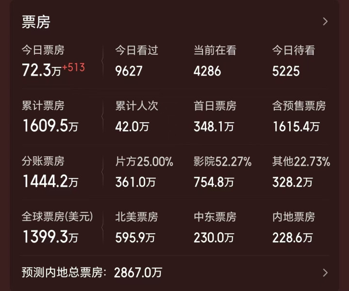 还有口碑很差,且极度令人感到失望的恐怖片《重返寂静岭》,上映了半个月,单日票房还能保持在500万人民币以上,累计票房也已经正式破亿。