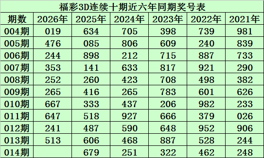 陈青峰福彩3D第2026014期推荐: