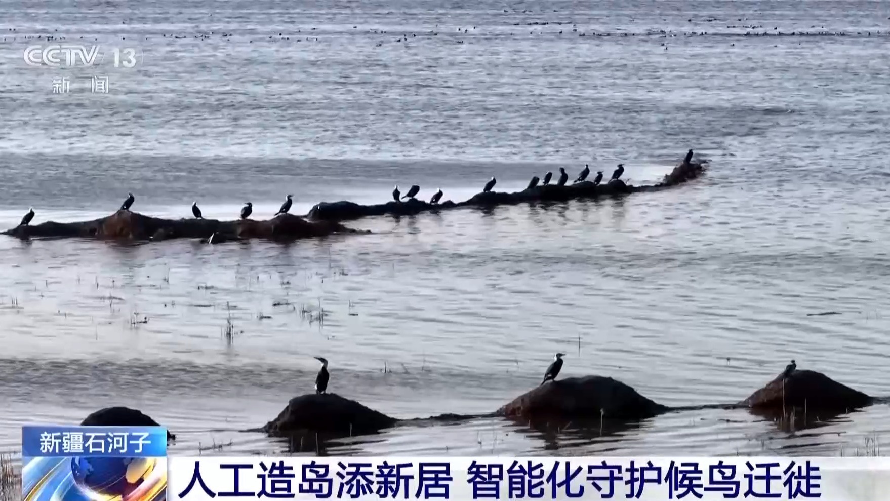 石河子市林业和草原服务中心工作人员 杨航:目前我们已经完成湿地修复200余公顷,以及15座大小鸟岛的建设。通过鸟岛的建设,我们可以看到,有更多的候鸟被吸引到此,在此停留栖息以及繁衍。同时,我们在自然保护区的周边布设了30余个点位的智能化监测设备,可以更好、更高效、更科学为候鸟保护工作以及后续工作方案调整提供科学化指导。